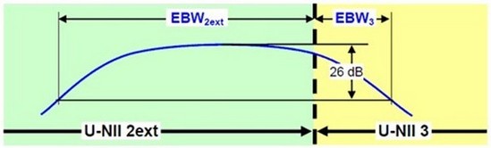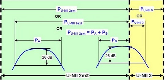 (3) 如果有一个信号跨越两个UNII的频带,这时必须以被跨越的频率做分隔,来判断在不同UNII频段的26dB EBW。